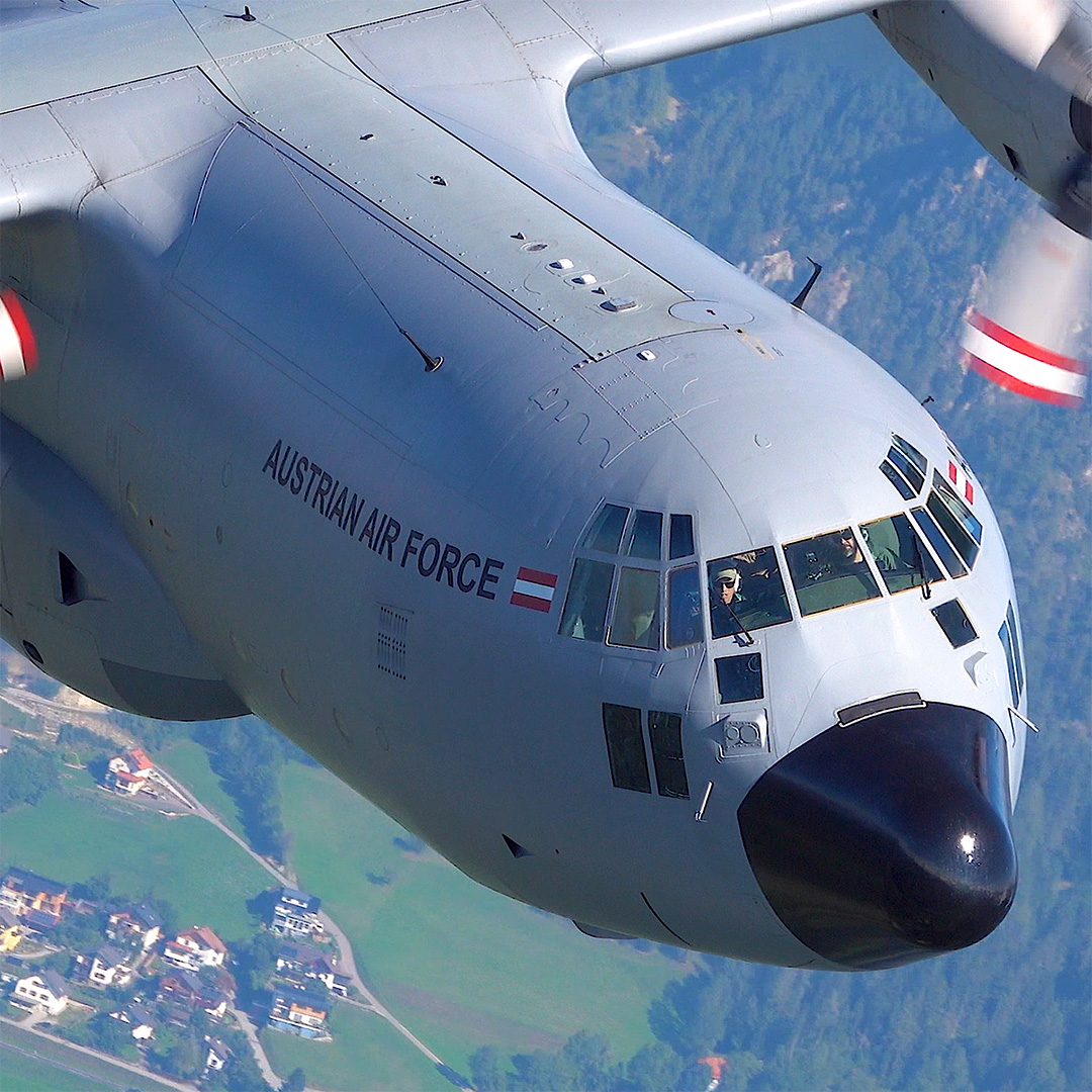 Originally delivered to the Royal Air Force in 1967 the C-130K (MSN 382-4198) now flies for the Austrian Air Force. In 1994 the aircraft was part of the Marshall Aerospace development program. The C-130K was loaned for a test with the GMA2100 engine to be part of the C-130J development program. In 2003 the aircraft was handed over to the Austrian Air Force.